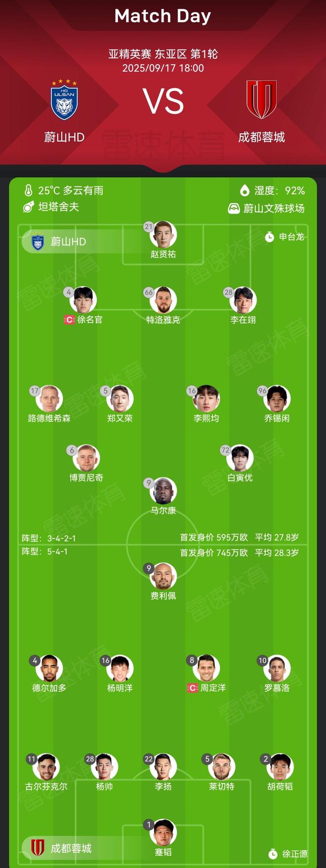 9月17日,Leisu Sports报道说,他在亚足联精英联赛的第一轮中面对韩国队Ulsan HD。至于比赛前两支球队的最初一致性,几乎所有主要演员都派出了几乎所有主要演员的成都隆钦的总净资产高于平均水平比平均水平高150万欧元,平均年龄为0.5岁。 Chengdu Rongcheng Starters: 1-Jangtao, 2-Hetao, 5-Time Milkot, 11-Golfinkel, 22-Li Yang, 28-Yang Shuai, 4-Delgado, 8-Zhou Dingyang, 10-Romol 66-Milosh Trojak, 96-Chue Xixuan, 5-Zheng Young, 6-Dalyan Boyanic, 72-Bai Yinyou, 16-li Xijun,17-Gustav Ludwigsong,9-Malkang